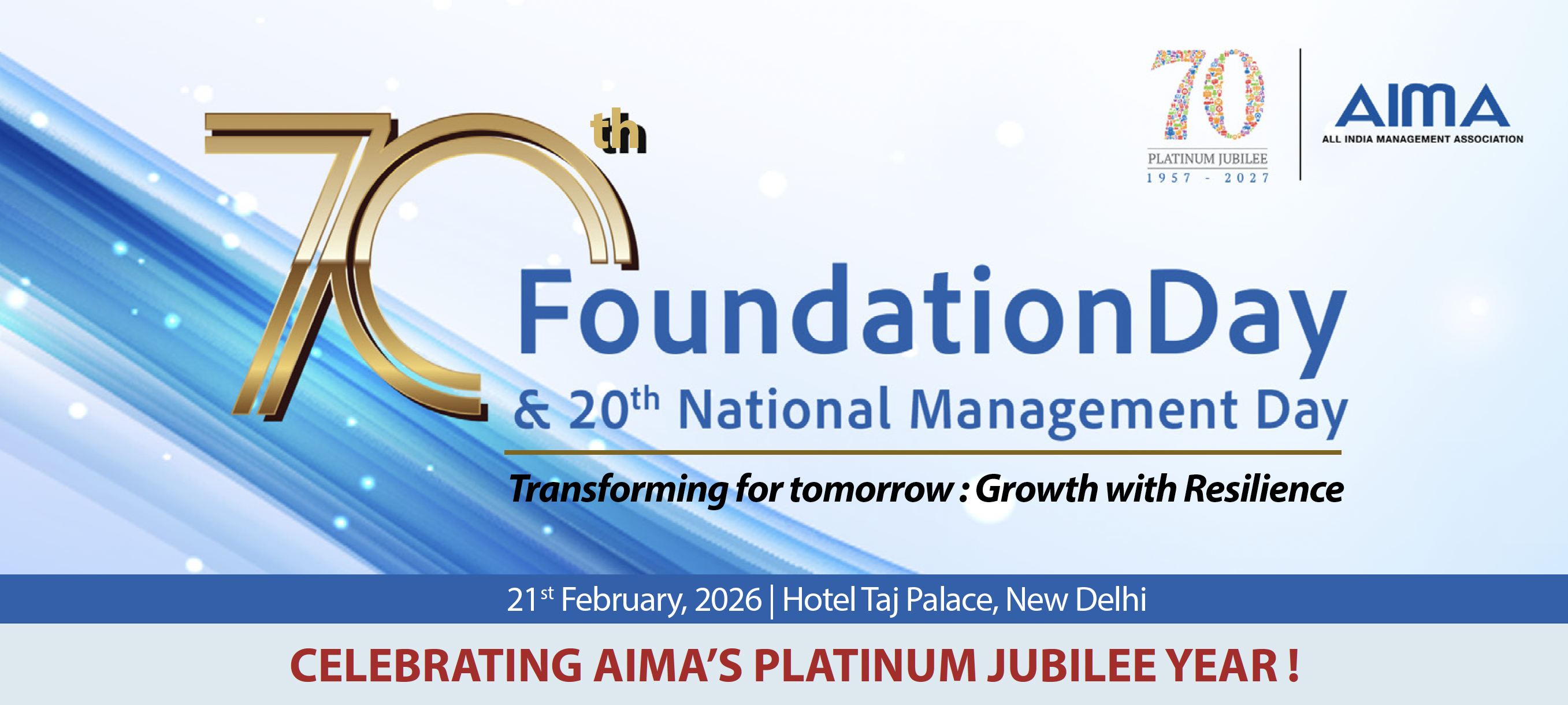 On 21st February 1957, 15 management associations came together to constitute All India Management Association; the national forum for promotion of management in India. Since then, this date has been celebrated as AIMA’s Foundation Day. In 2006, AIMA celebrated its Golden Jubilee with Dr APJ Abdul Kalam, then President of India on its Foundation Day in 2006. February 21st was declared as India's 'National Management Day'. This flagship event since then came to be known as the AIMA Foundation Day and National Management Day, which is celebrated every year by AIMA and it's network of 68 Local Management Associations (LMAs) all over the country.